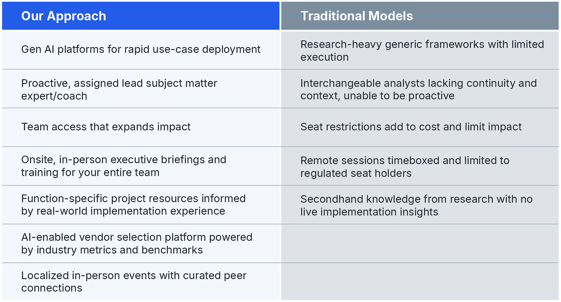 Applied Intelligence is a continuous, expert-led, decision-support model that helps leaders convert insight into action adapted for your needs. It combines experienced human judgment, proprietary AI-enabled intelligence, benchmarks and 30+ years of real-world enterprise know-how to support decisions from strategy through execution. Unlike traditional research, Applied Intelligence focuses on helping leaders decide, act, and deliver measurable results.