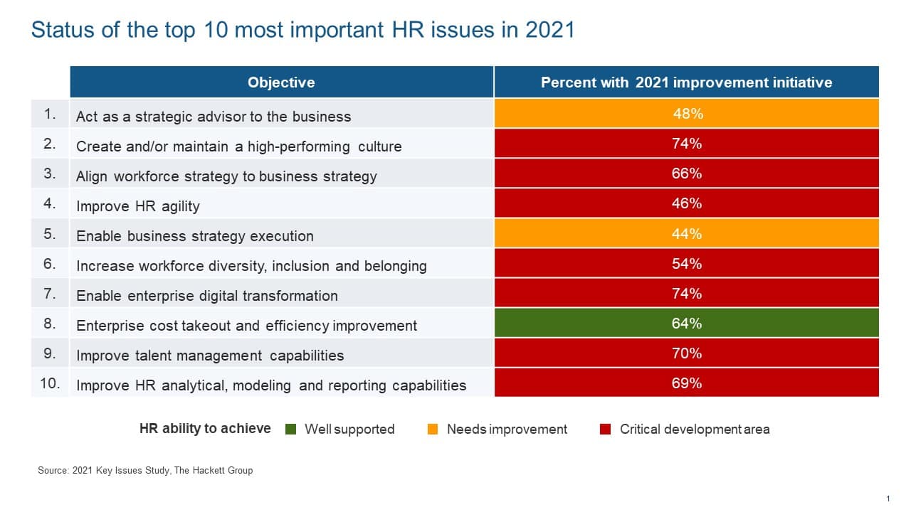The Hackett Group’s 2021 Key Issues Study reveals new Covid-driven priorities amid resource constraints and challenging business conditions. While adoption of digital technologies continues to grow, HR organizations need to close significant gaps in critical capabilities.