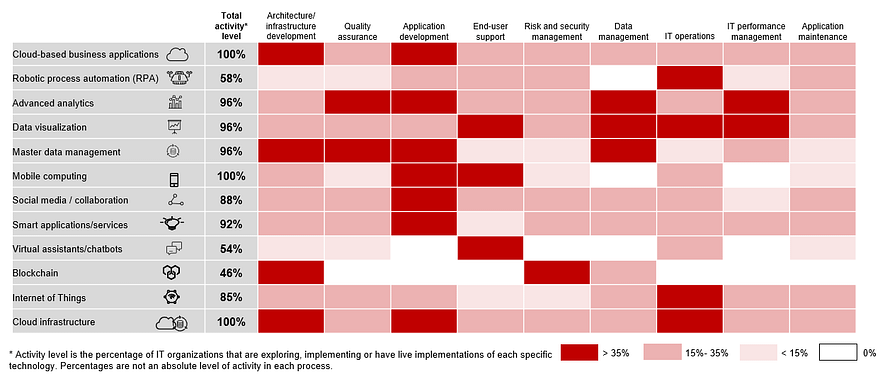 Distribution of digital activity levels across IT core processes