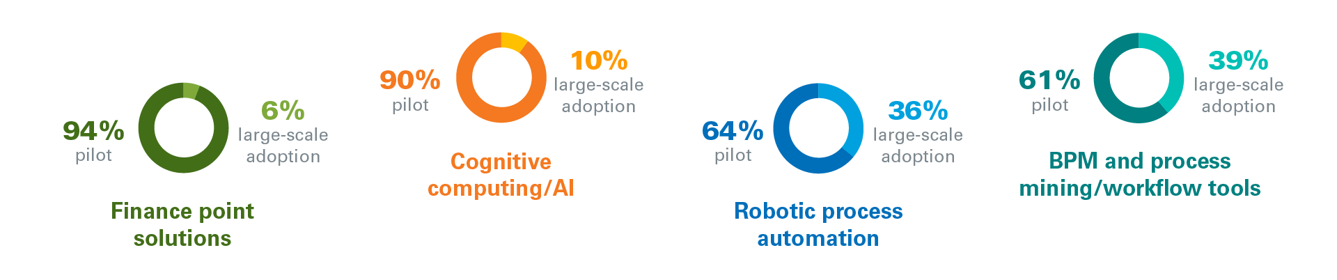 For finance to succeed, digital technologies need to achieve enterprise scale. Currently, they do not. This means finance organizations have significant opportunities to expand these beyond pilot projects or small-scale deployments.