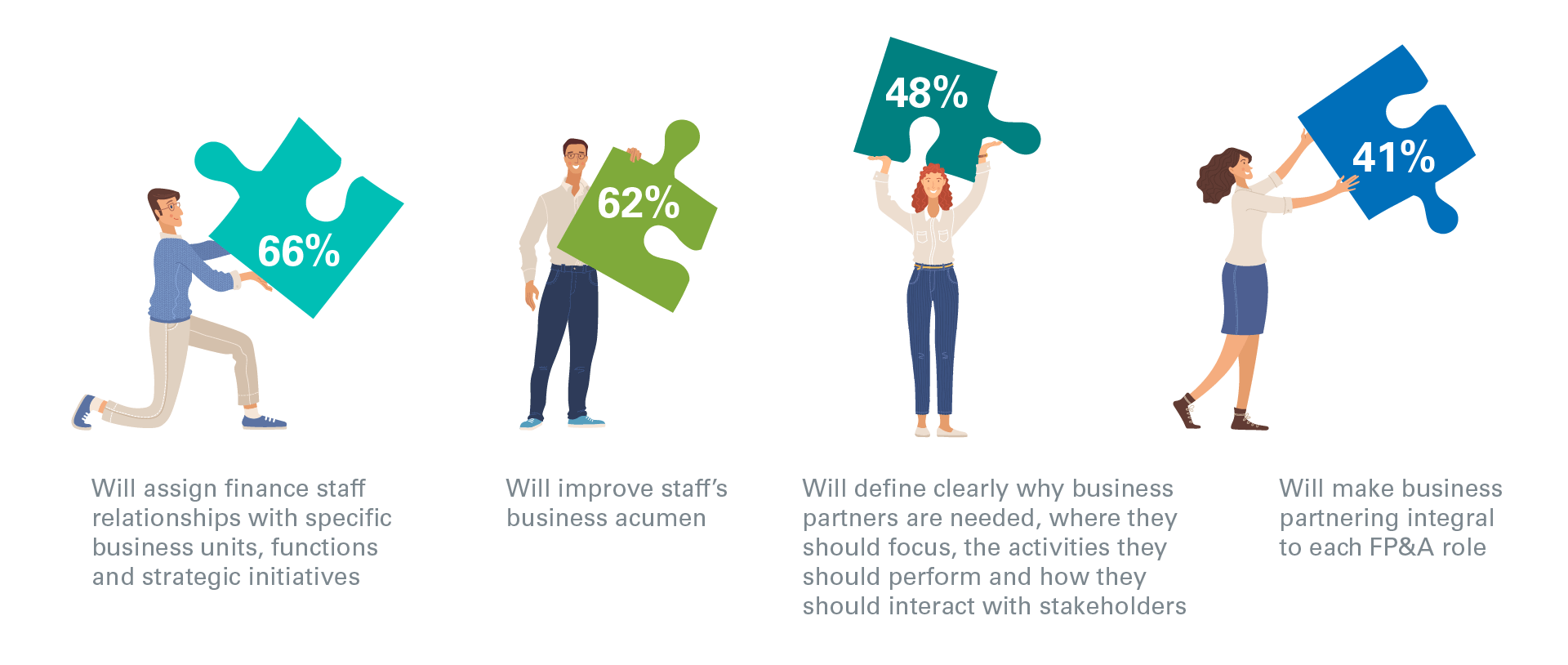Finance leaders are emphasizing cross-functional business partnering, business aptitudes and work prioritization as the top ways to become a strategic business partner. Of concern, though, nearly one-quarter (21%) of finance organizations are not actively planning or executing on business partnering initiatives.