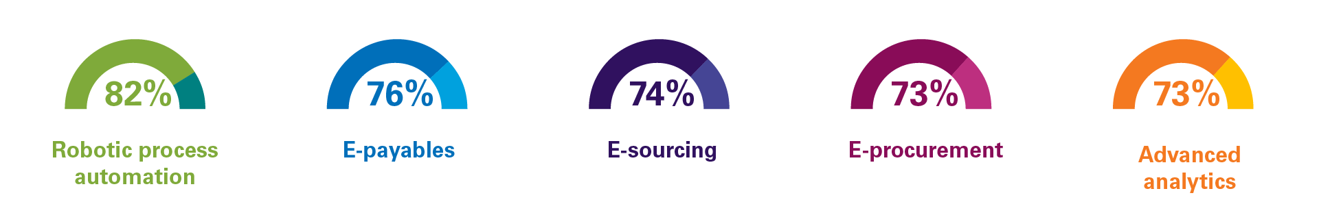 Overall, procurement leaders expect to increase technology spending, indicating a growing reliance on technology to increase productivity, efficiency and effectiveness.