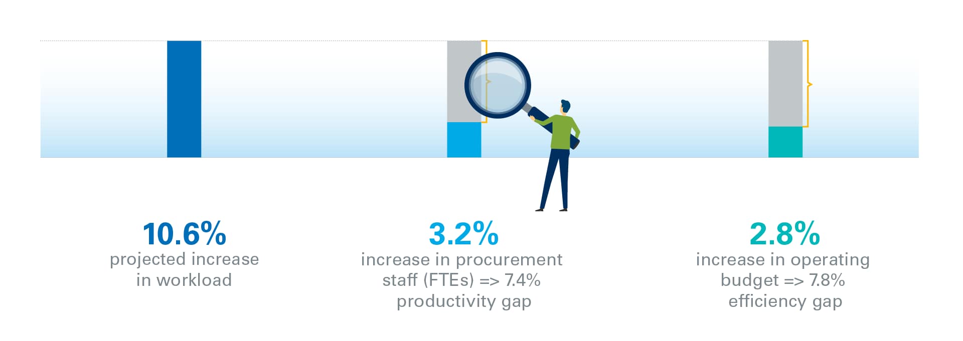 Addressing these diverse priorities will require resources. The Key Issues Study confirms and quantifies what procurement executives already know: They must find a way to do more with less. In 2023, the procurement workload is predicted to increase by 10.6%, reflecting the broadening of priorities, but with little increase in head count and operating budget. This creates a productivity gap of 7.4% and an efficiency gap of 7.8%. After several years of reduced or flat levels of staffing and operating budgets, the modest projected increases in staff and budget shrink the magnitude of these gaps somewhat relative to last year’s study (11.4% and 12.4%, respectively) – however, procurement executives still have a significant challenge in front of them.