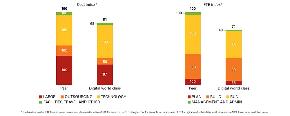 In 2021, we incorporated the structural changes associated with technology innovation and digital transformation into our annual benchmarking methodology, creating a new target that we call Digital World Class. Here’s what we found: