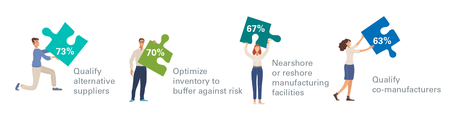 Over the coming year, they expect the biggest increases in risk mitigation activity to center around the ability to quickly change suppliers, product line simplification/SKU rationalization, and expansion of risk data and supply/market intelligence.