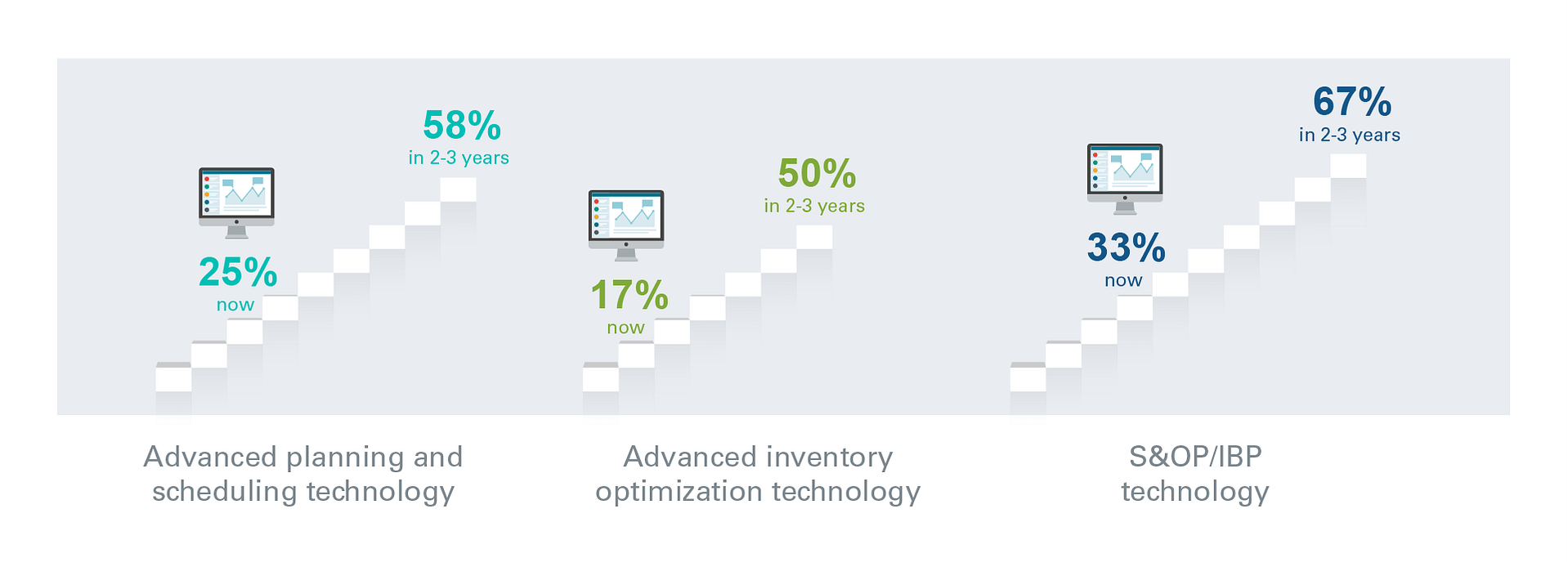 Supply chain technology is deemed a key enabler of the top 2023 priorities to optimize inventory, reduce supply chain risk, improve product availability and improve S&OP/IBP, while improving supply chain cost-efficiency. Organizations have an opportunity to move value-producing supply chain technology beyond the pilot phase. Indeed, many are planning significant increases in large-scale deployment of advanced planning and scheduling, inventory optimization, and S&OP/IBP tools. As in previous studies, S&OP/IBP tools were rated as providing the highest business value among supply chain technology tools.