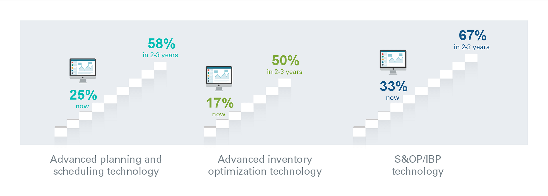 Supply chain technology is deemed a key enabler of the top 2023 priorities to optimize inventory, reduce supply chain risk, improve product availability and improve S&OP/IBP, while improving supply chain cost-efficiency. Organizations have an opportunity to move value-producing supply chain technology beyond the pilot phase. Indeed, many are planning significant increases in large-scale deployment of advanced planning and scheduling, inventory optimization, and S&OP/IBP tools. As in previous studies, S&OP/IBP tools were rated as providing the highest business value among supply chain technology tools.