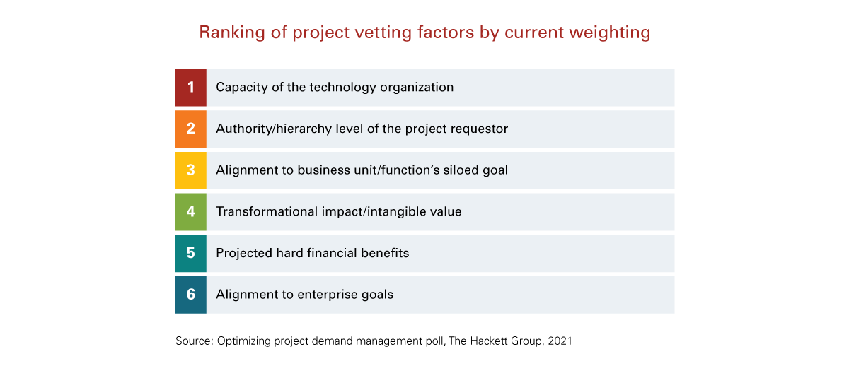 Let’s end this on a more constructive note, with a couple recommendations by our team for optimizing technology project demand. We know these efforts make a difference over time. But even so, technology and business unit leaders must get beyond the hypocrisy of value-based demand management and make real changes in how they develop, pitch, and judge project proposals.