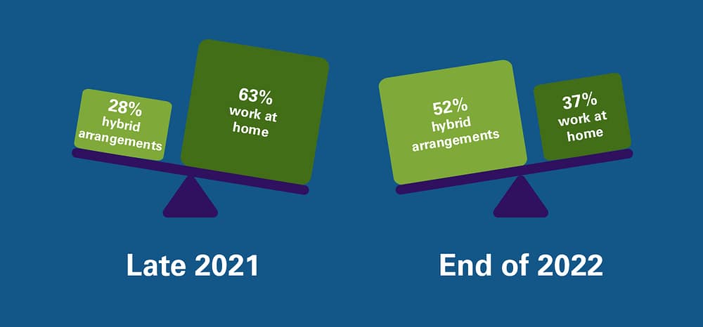 While remote work is disrupting the procurement operating model, it is proving to be viable for procurement staff in most industries. This trend supports cost reduction and environmental objectives, making it a win-win for procurement and the enterprise. Remote working appears to be stabilizing and was expected to be at about 89% of the procurement workforce at the start of 2022. However, the balance of work is shifting away from predominantly work-at-home arrangements to a hybrid model.